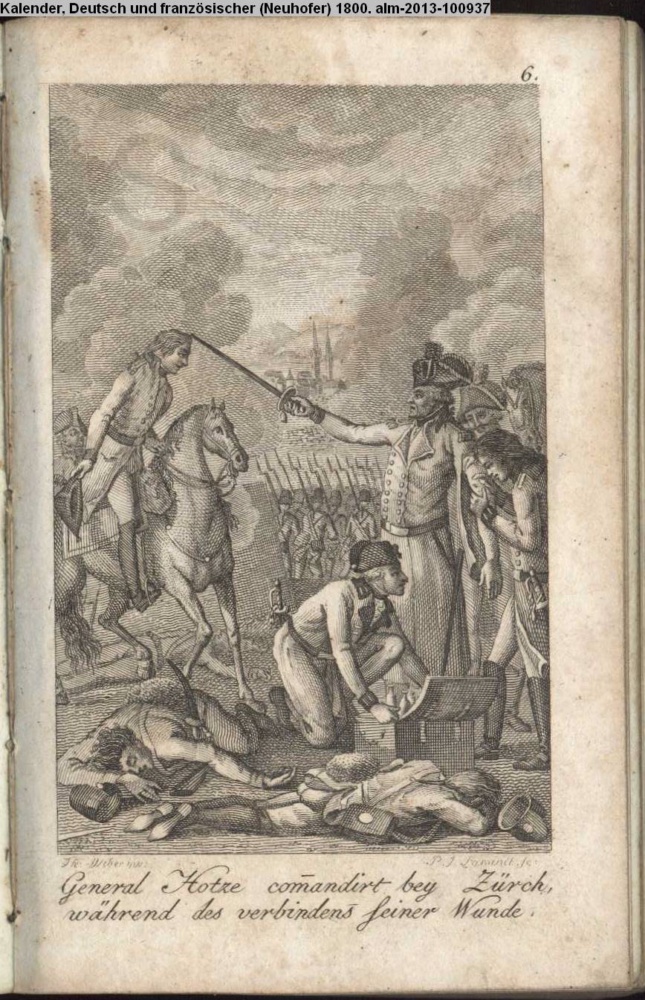 General Hotze commandirt bey Zürich / Während des verbindens seiner Wunde