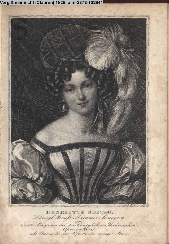 HENRIETTE SONNTAG. / Königl. Preuss. Kammer-Sängerin / und / Erste Sängerin bei der Königlichen Italienischen / Oper in Paris / als Anna in der Oper: Die weisse Frau
