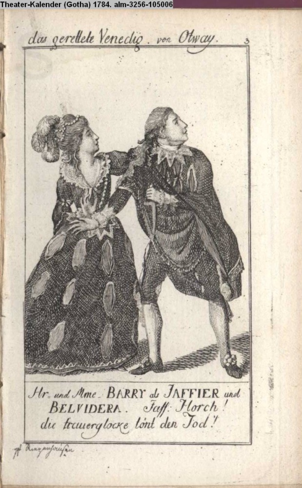 das gerette Venedig von Otway. / Hr. und Mme. BARRY als JAFFIER und / BELVIDERA. Jaff: Horch! / die trauerglocke tönt den Tod!