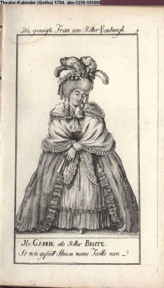 Die geneigte Frau von Ritter Vanburgh. / Herr GARRIK als Ritter BRUTE. / So wie gefällt Ihnen meine Taille nun-?
