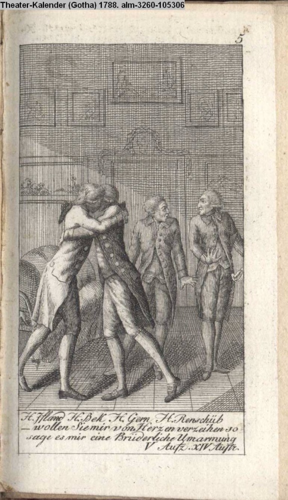 H. Iffland H. Bek H. Gern H. Renschüb / - wollen Sie mir von Herzen verzeihen so / sage es mir eine brüderliche Umarmung / V Aufz. XIV. Auft.