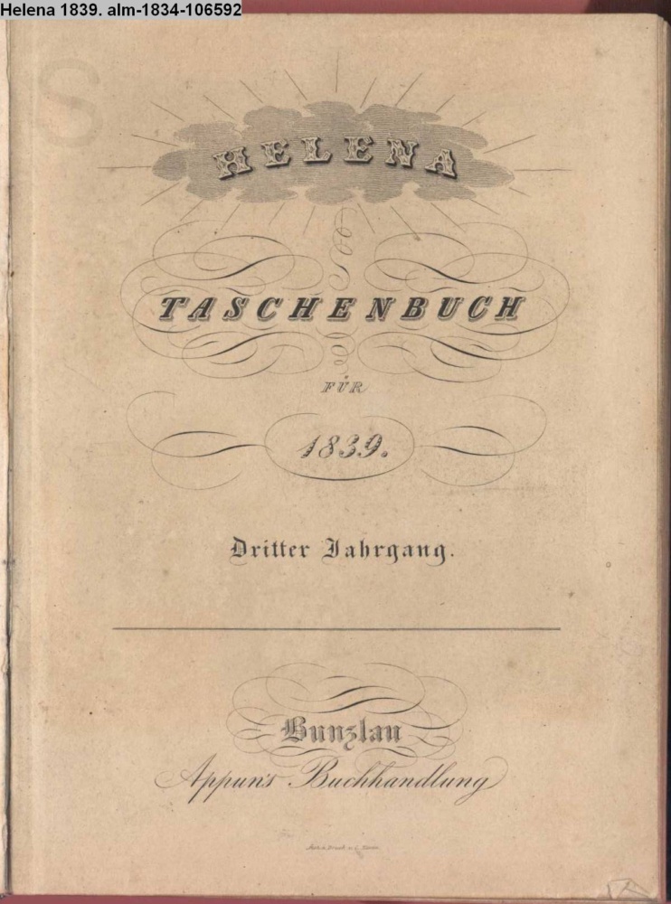 HELENA / TASCHENBUCH / FÜR / 1839. / Dritter Jahrgang. / Bunzlau. / Appun's Buchhandlung