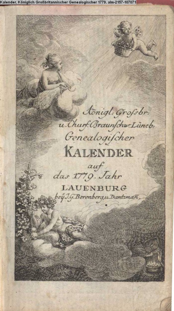 Königl. Grossbr. / u. Churf. Braunschw. Lüneb. / Genealogischer / KALENDER / auf / das 1779. Jahr. / LAUENBURG / bey / J. G. Berenberg u. Dantzmann