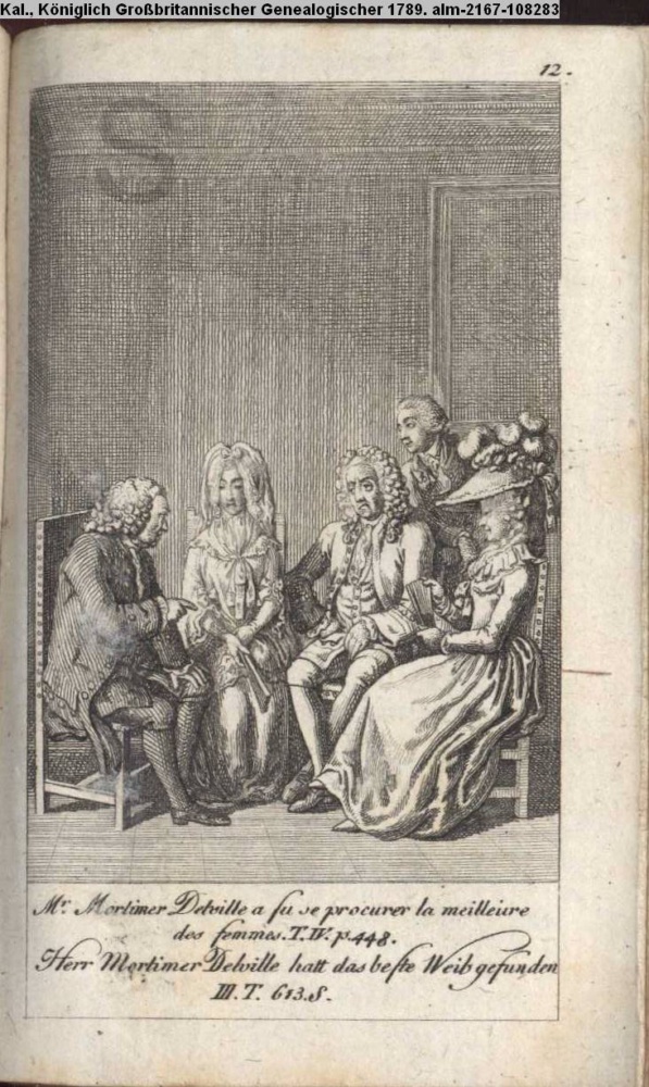 Mr. Mortimer Delville a fu se procurer la meilleiure / des femmes. T. IV. p. 448. / Herr Mortimer Delville hat das beste Weib gefunden. / III. T. 613. S.
