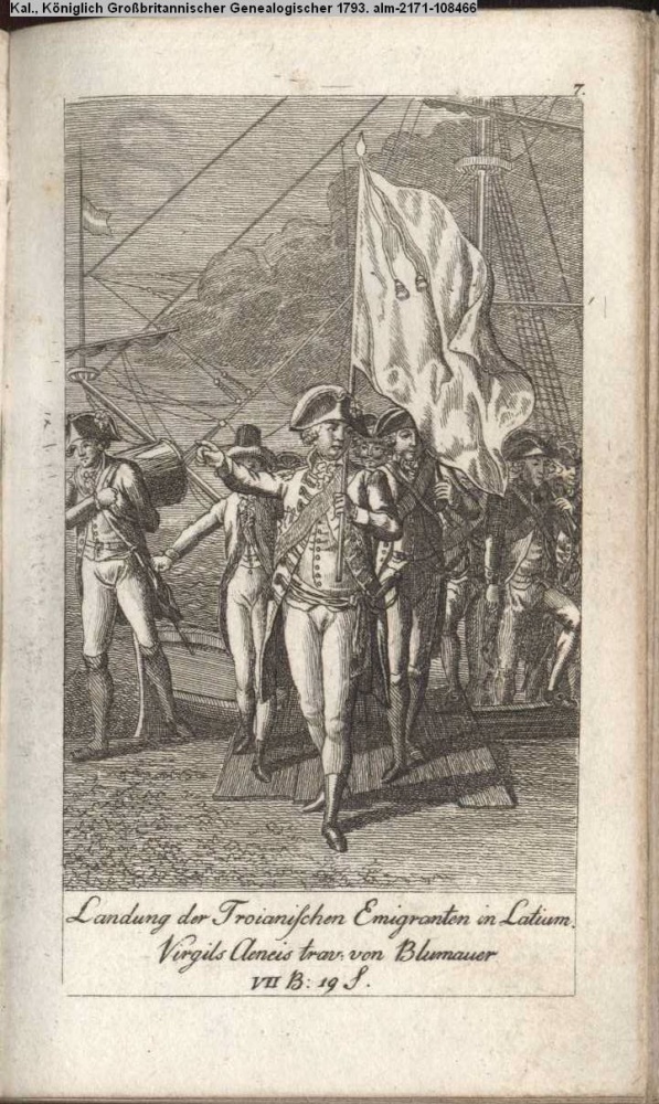 Landung der Troianischen Emigranten in Latium / Virgils Aeneis trav. von Blumauer / VII. B. 19. S.