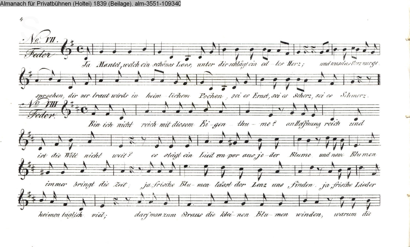 Seite 4 der Beilage mit Vertonungen zu »Der schottische Mantel« von Karl v. Holtei