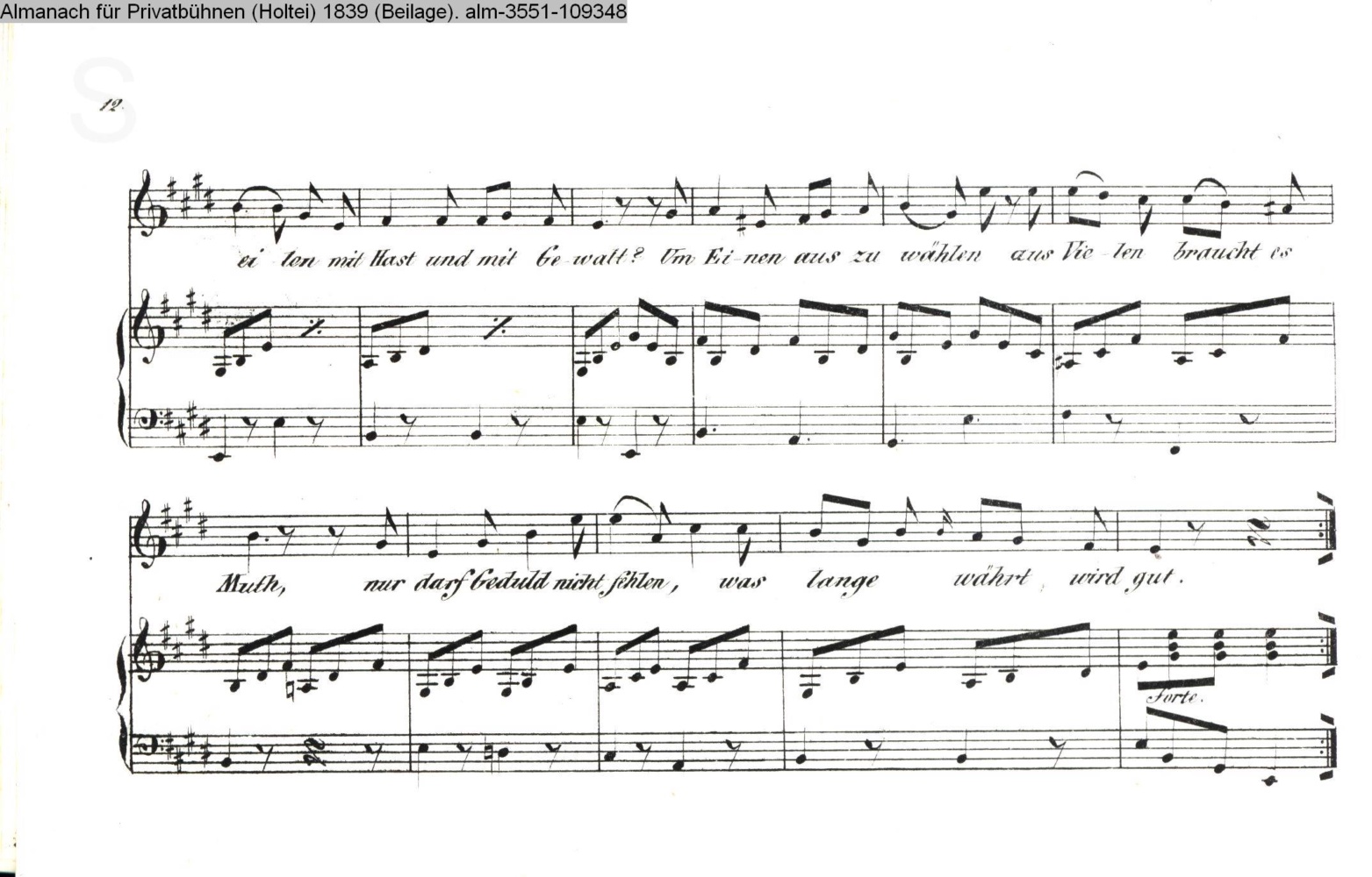 Seite 12 der Beilage mit Vertonung zu »Ein Achtel vom großen Los« von Karl v. Holtei