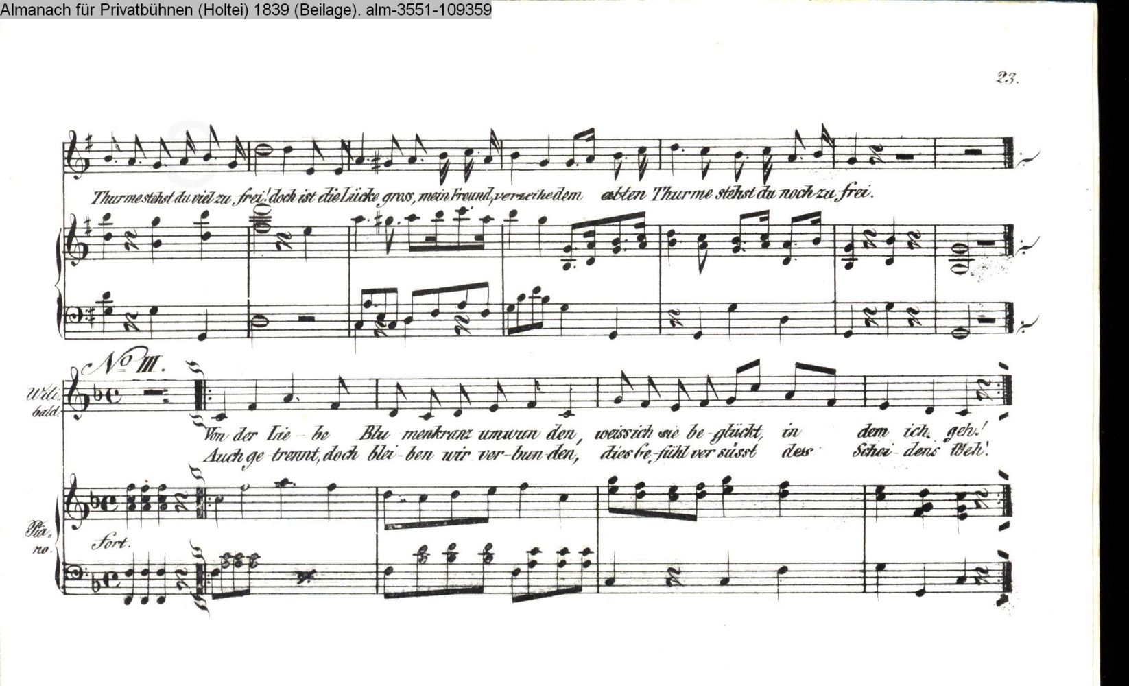 Seite 23 der Beilage mit Vertonungen zu »Die Perlenschnur«von Karl v. Holtei