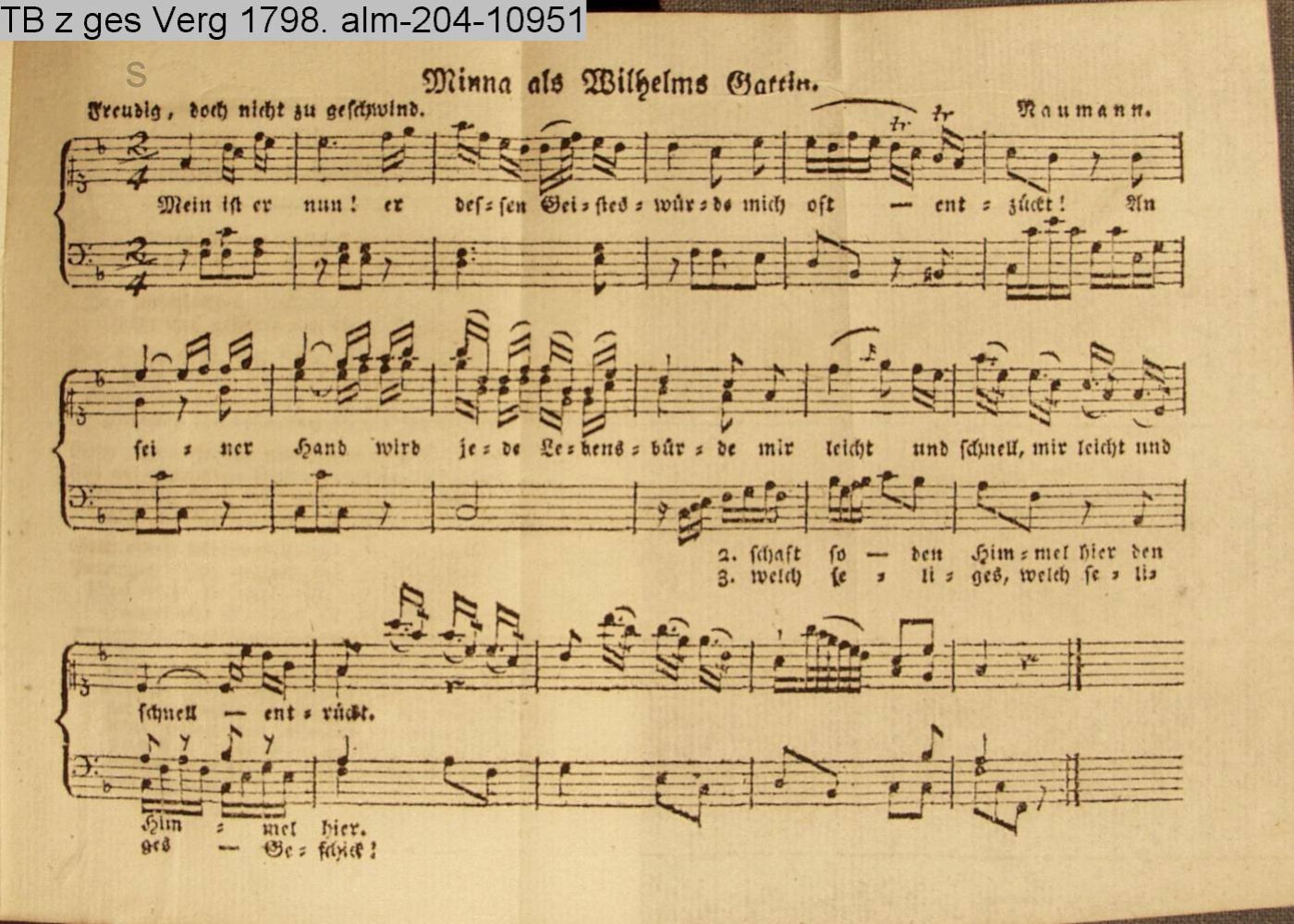 Vertonung des Gedichts »Minna als Wilhelms Gattin« von Elisa d. i. Elisabeth Charlotte von der Recke