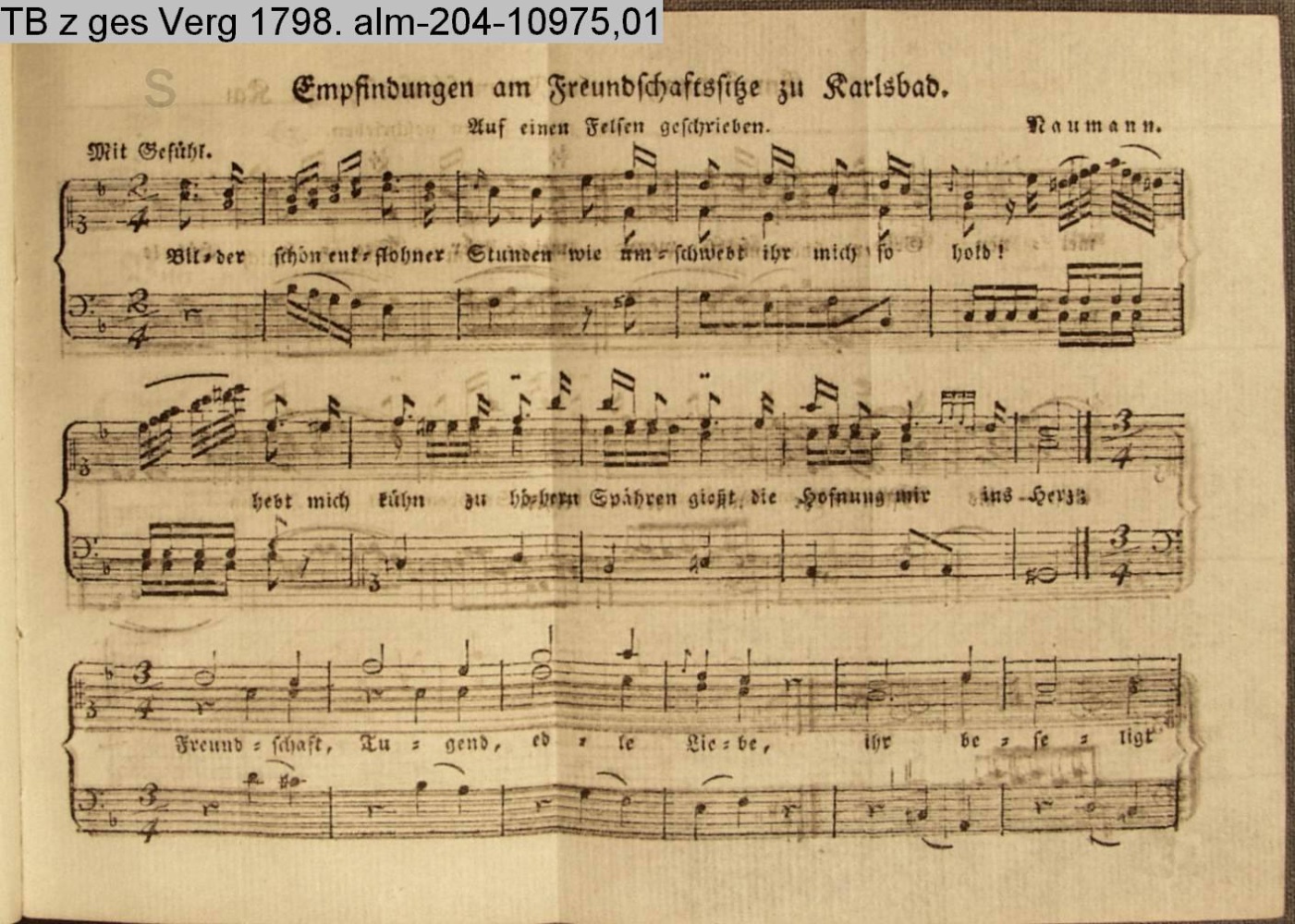 Vertonung des Gedichts »Empfindungen am Freundschaftssitze zu Karlsbad, auf einen Felsen geschrieben.« von Elisa d. i. Charlotte Elisabeth von der Recke