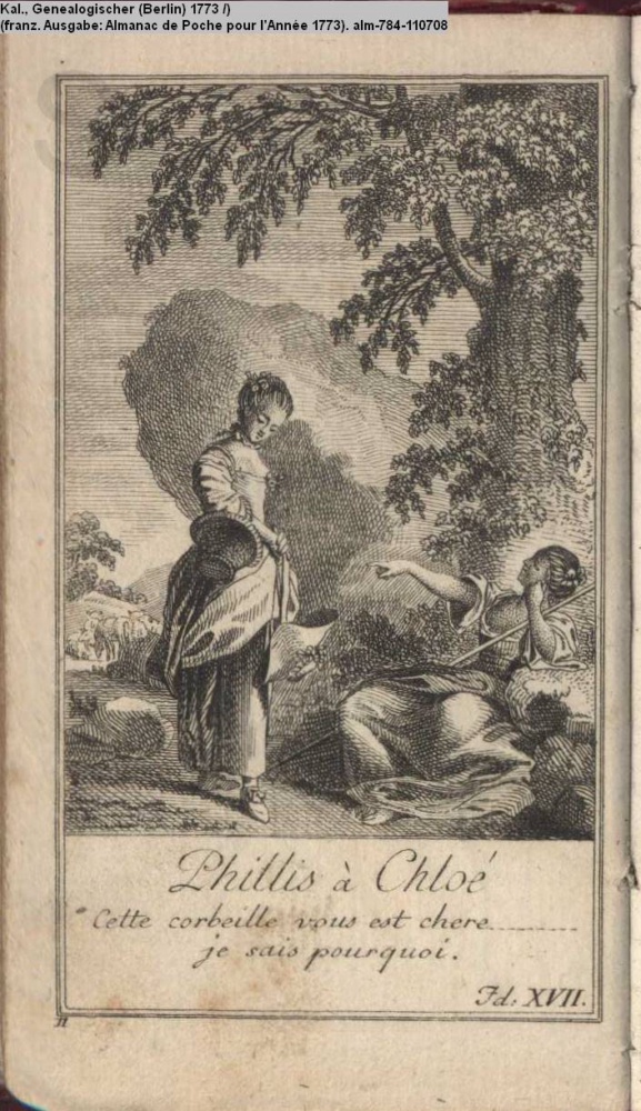 Phillis à Chloé / Cette corbeille vous est chere --- / je sais pourquoi. / Id. XVII.