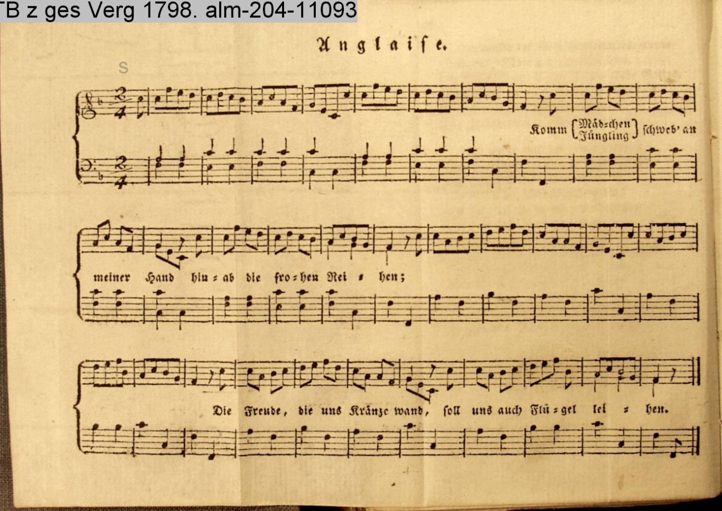 # Bezeichnung am Gedicht. Vertonung des Gedichts: »Tanzlied« von F. v. Köpken