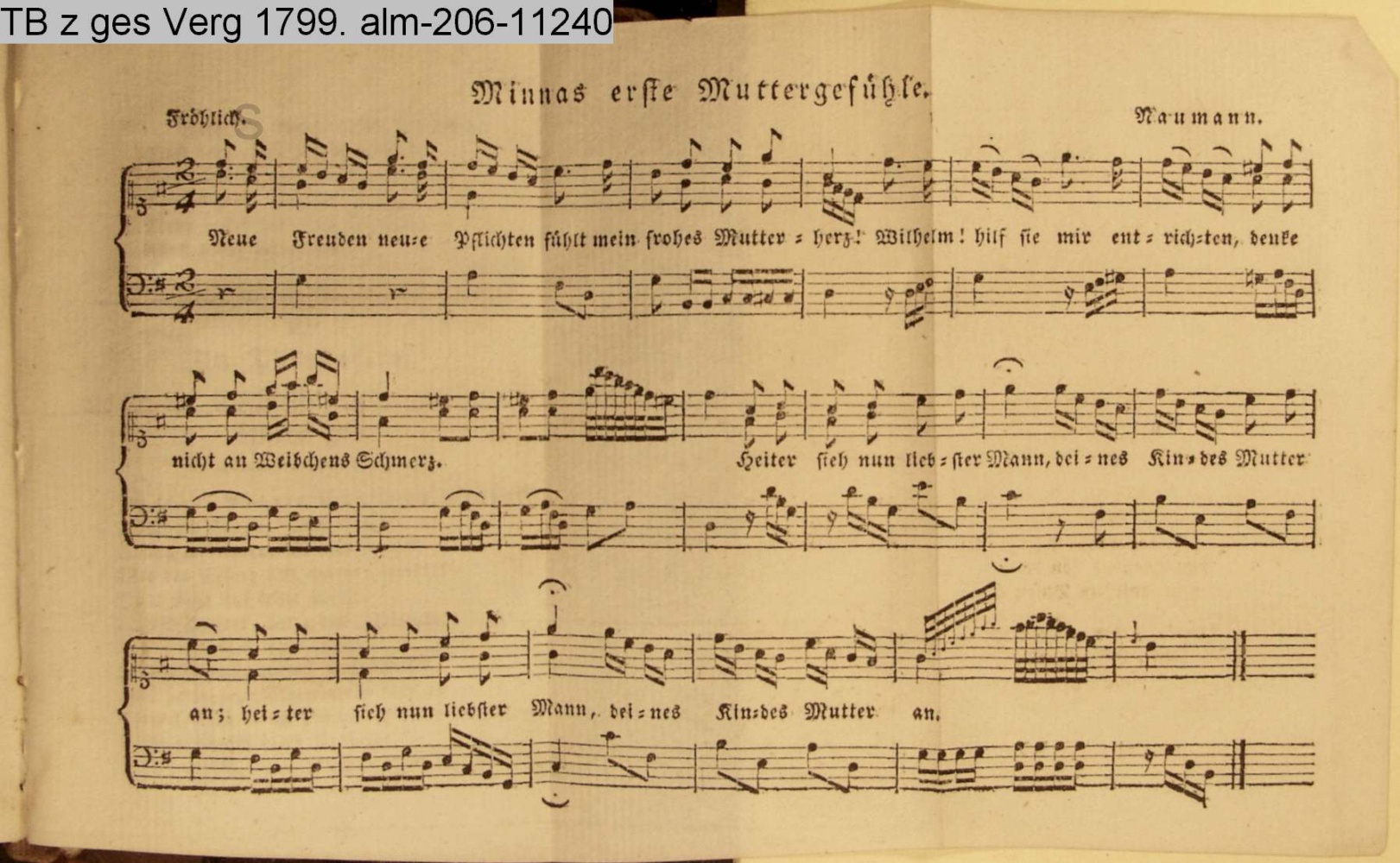 Vertonung des Gedichts »Minnas erste Muttergefühle« von Elisa, d. i.Charlotte Elisabeth von der Recke.