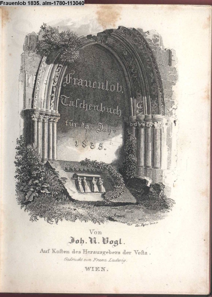 Frauenlob. / Taschenbuch / für das Jahr / 1835. / Von / Joh. N. Vogl. / Auf Kosten des Herausgebers der Vesta. / Gedruckt von Franz Ludwig. / WIEN