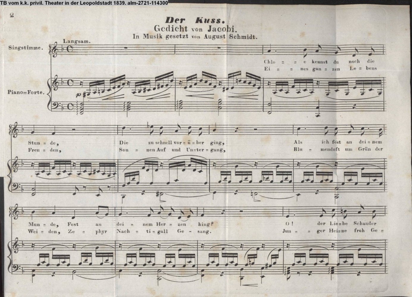 Vertonung des Gedichts »Der Kuss« von J. G. Jacobi