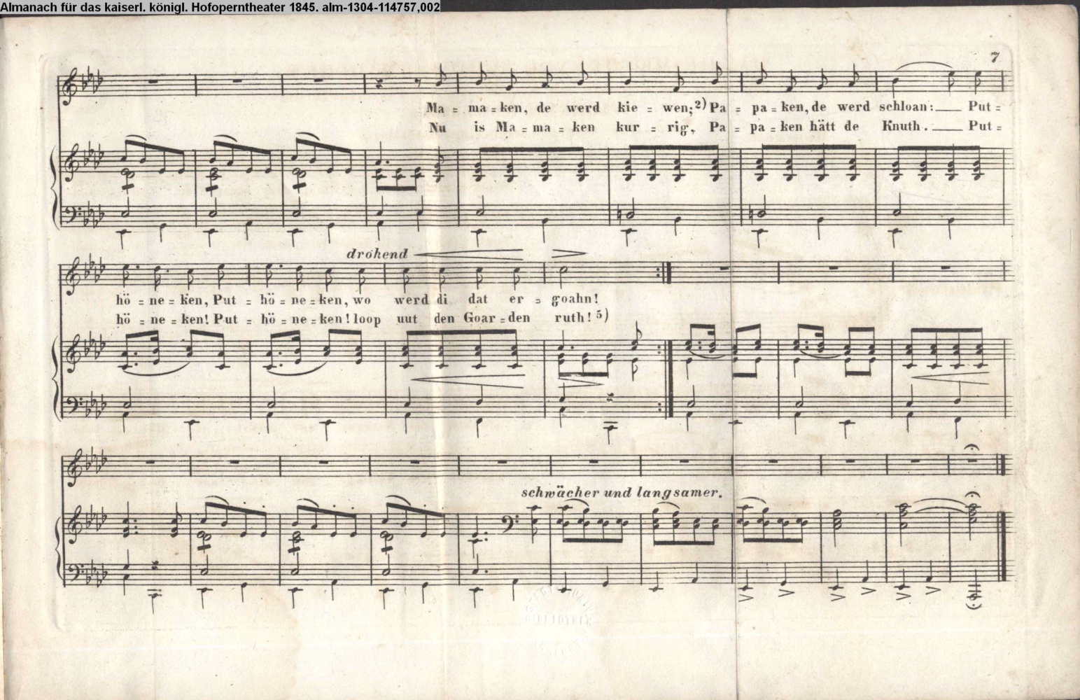 Puthöneken, Puthöneken, wat deist in unsern Hof? Du plückst uns all de Blöhmkens af, du mäkest all to groff!…