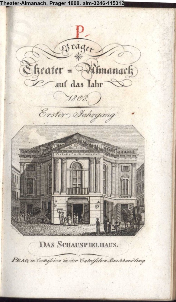 Prager / Theater-Almanach / auf das Jahr / 1808. / Erster Jahrgang / DAS SCHAUSPIELHAUS. / Prag, in Commission in der Calvéschen Buchhandlung
