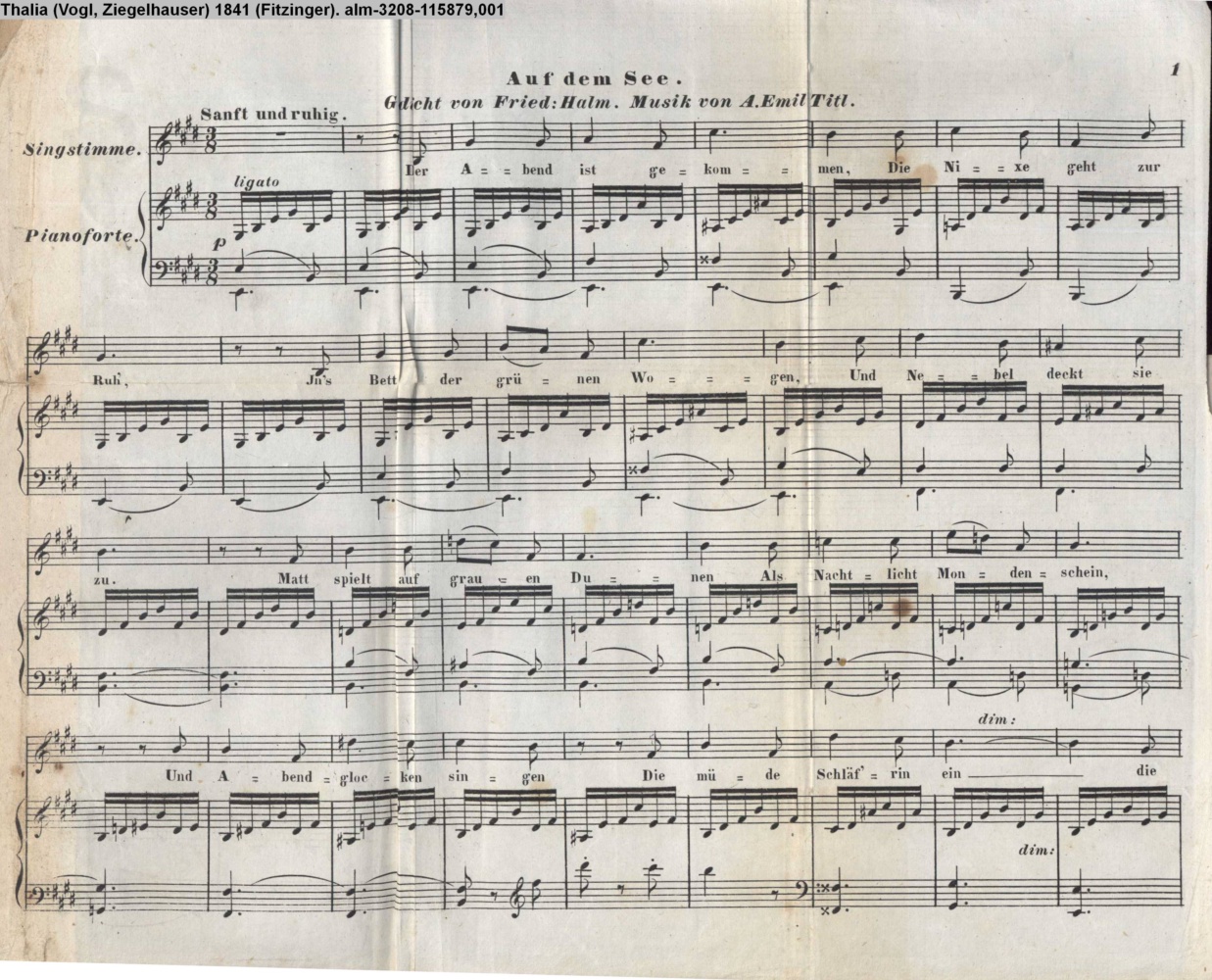 Auf dem See / Gedicht von Fr. Halm. Musik von A. Emil Titl