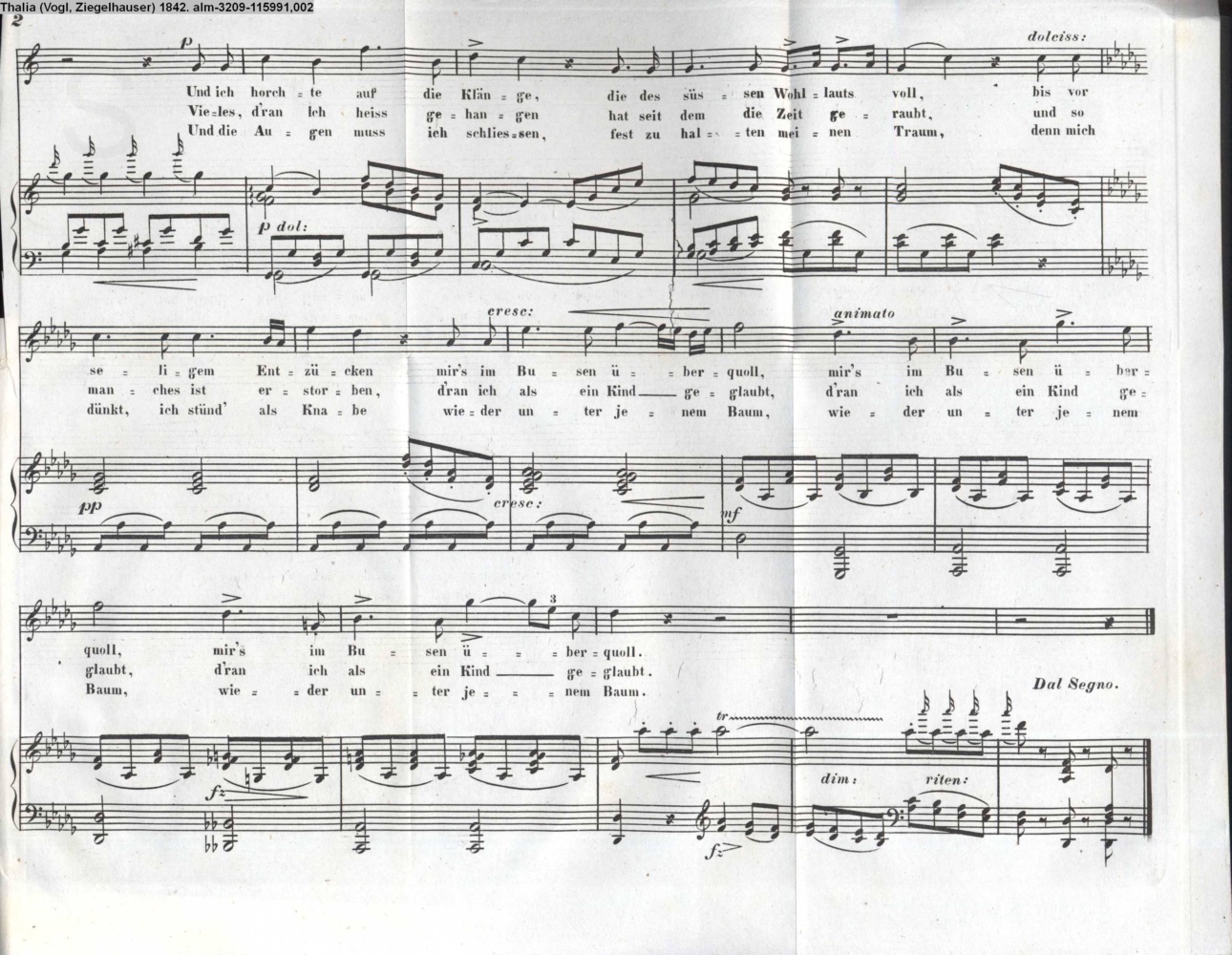 Vertonung des Gedichts »Nachtigallenlied« von J. N. Vogl