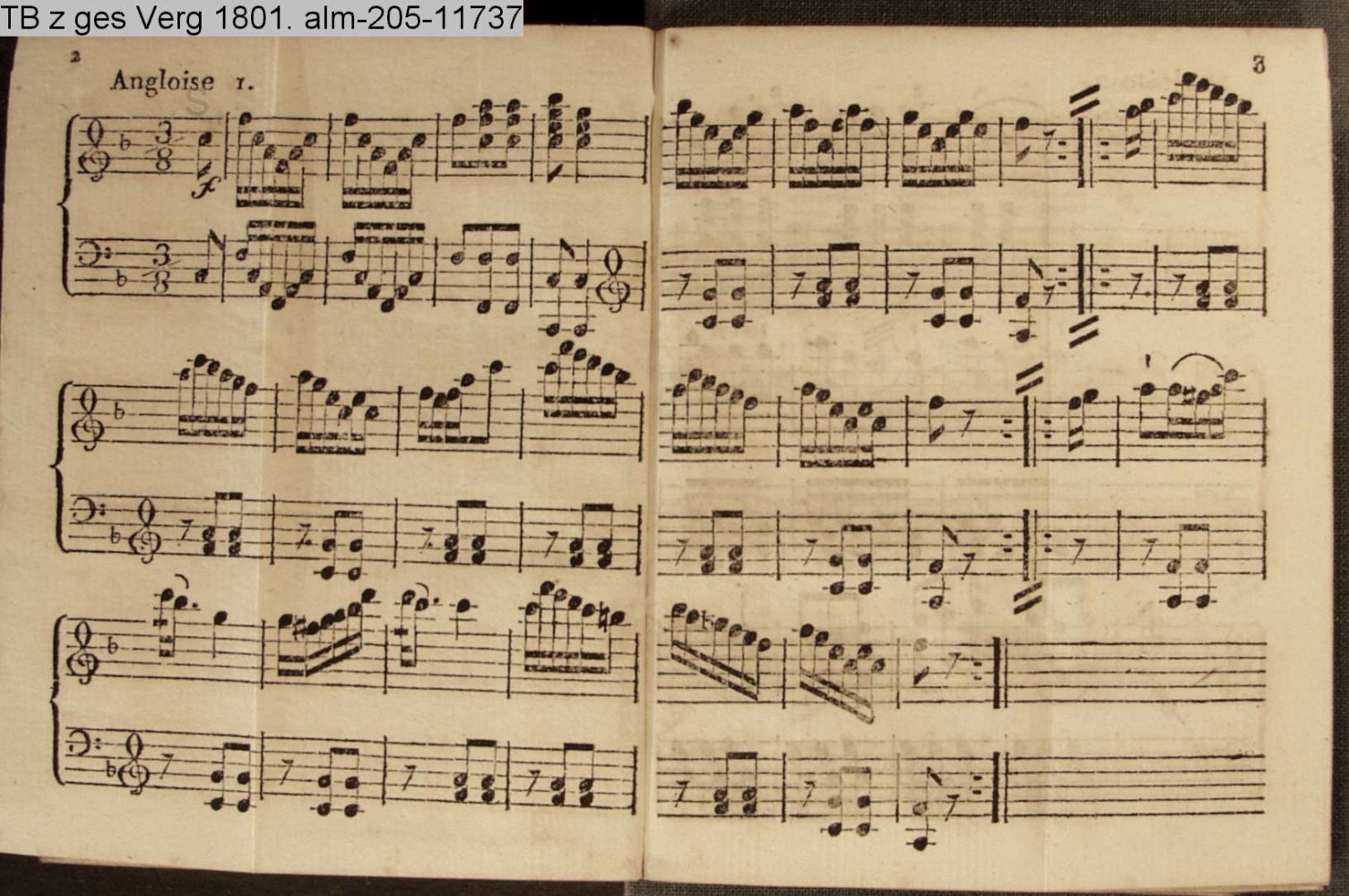 6 Angloisen 2 Quadrillen 2 Menuetten und 4 Walzer von Kapellmeister Vinzenz Mascheck in Prag (Sammlung