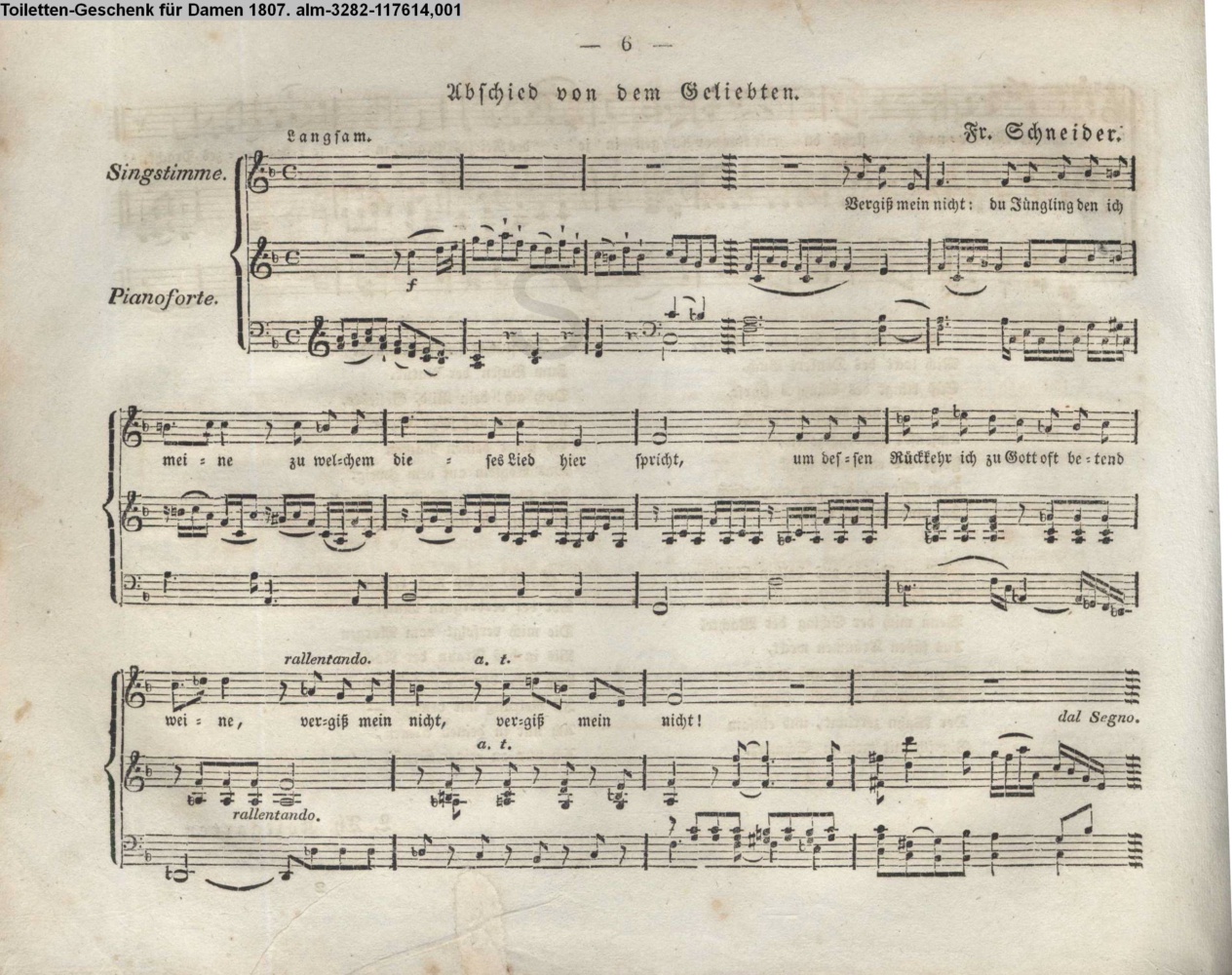 INr 117610, Obj 43) Vertonung des Gedichts »Abschied von dem Geliebten«