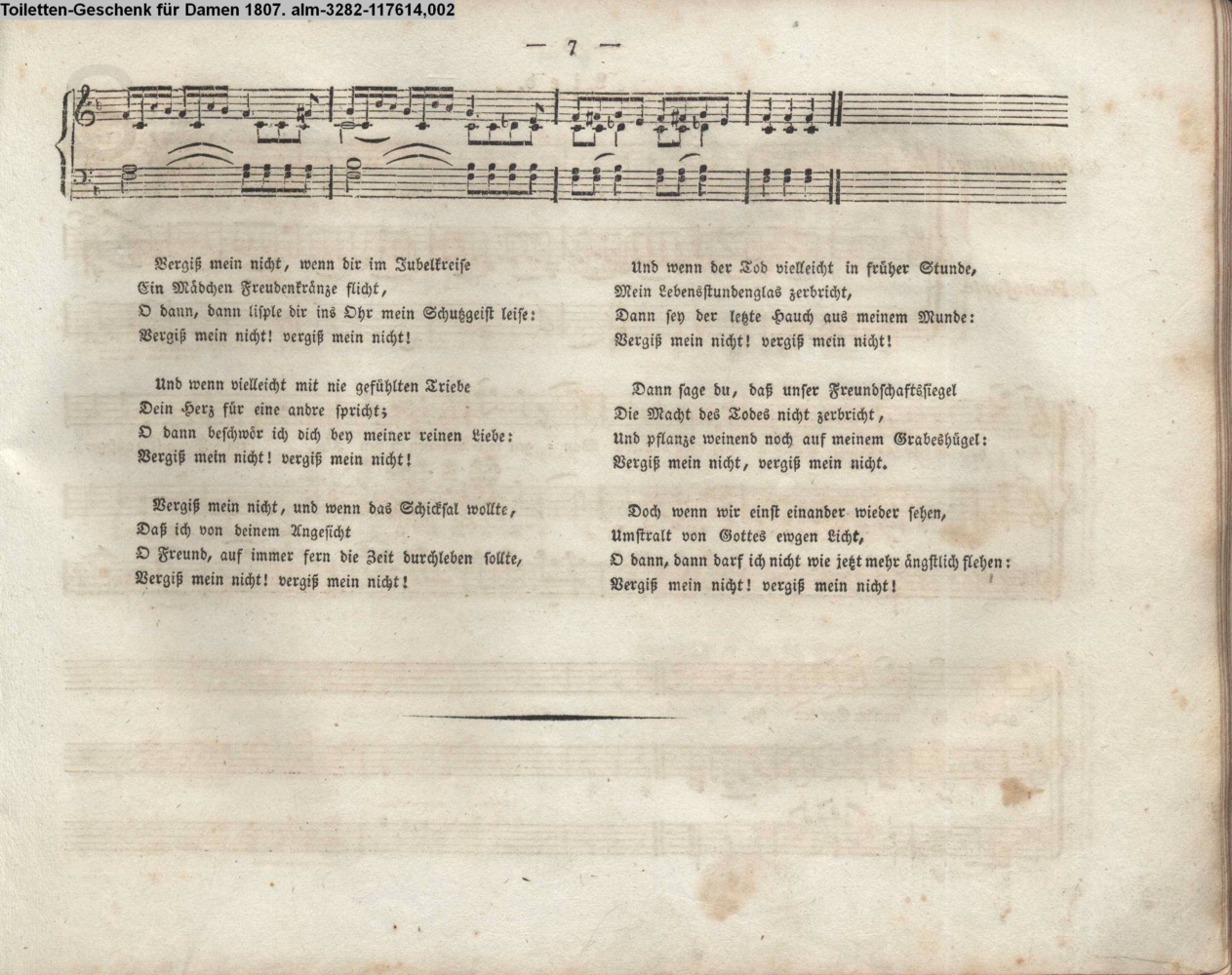 Vergiß mein nicht: du Jüngling den ich meine, zu welchem dieses Lied hier spricht,…