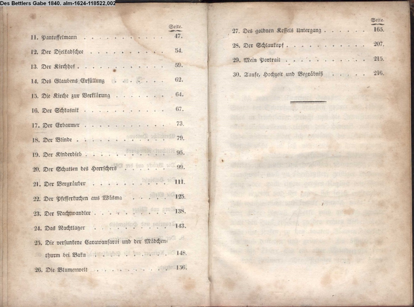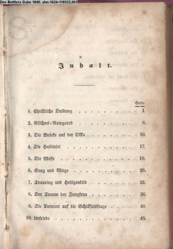 Bettlers Gabe, Des 1840