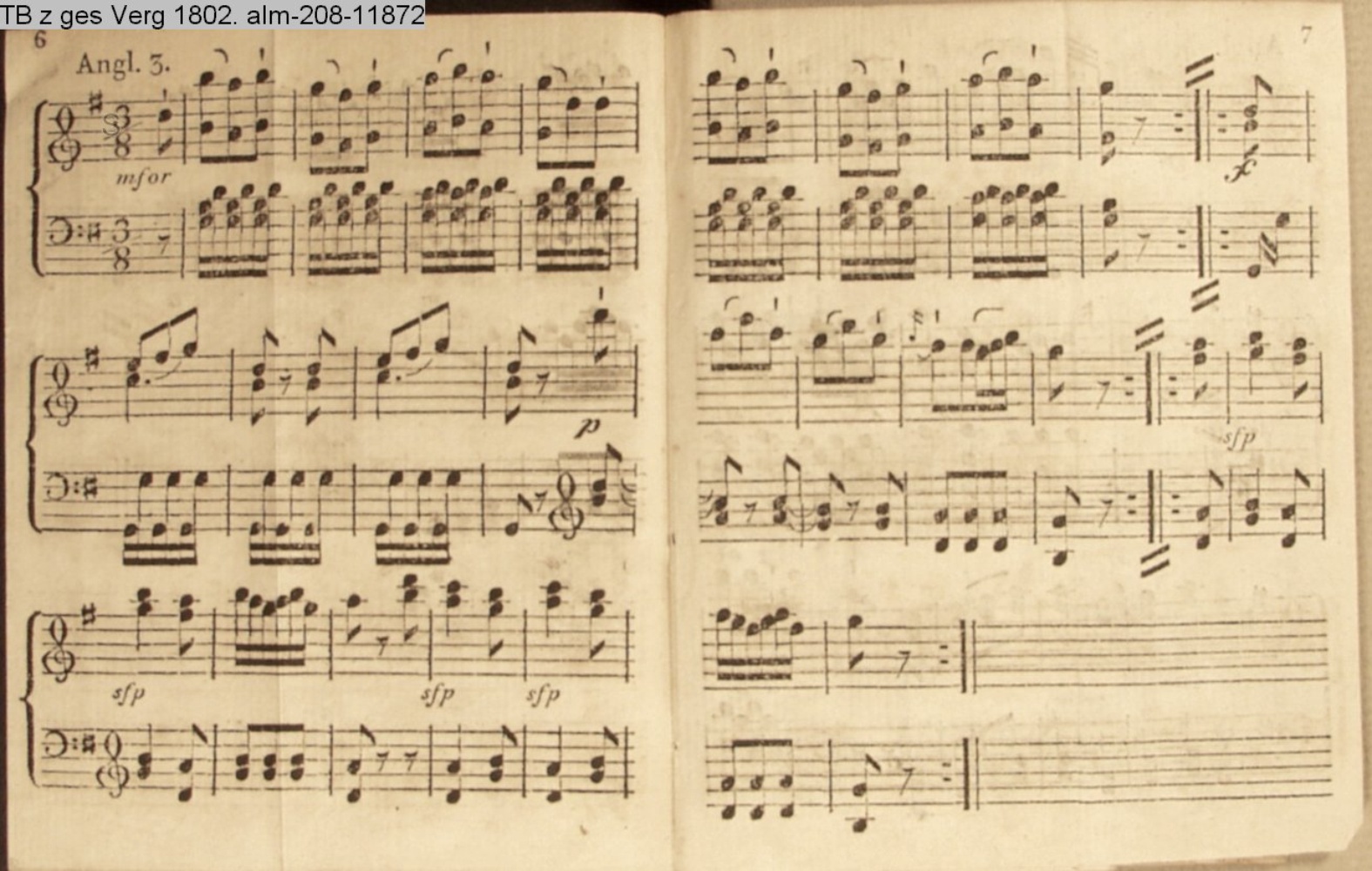 6 Angloisen 2 Quadrillen 2 Menuetten und 4 Walzer von Vinzenz Mascheck Kapellmeister in Prag (Sammlung