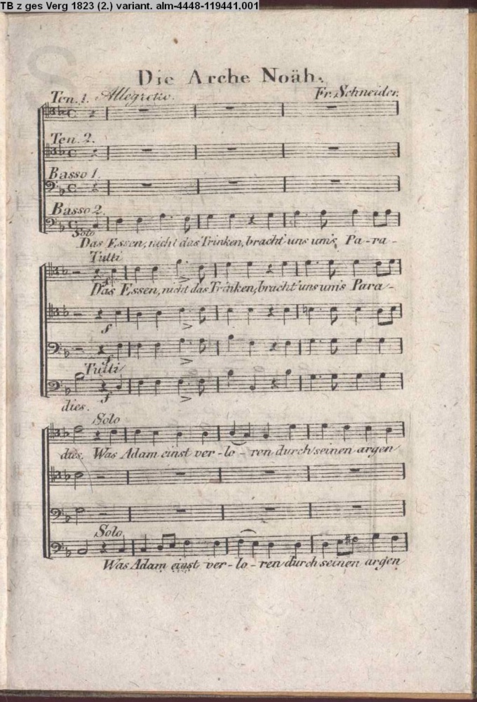 Vertonung des Gedichts »Die Arche Noah« von W. Müller INr 22607, Obj 120