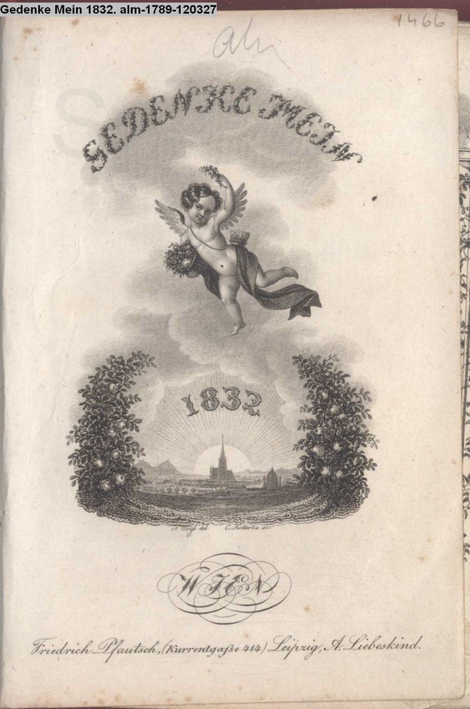 GEDENKE MEIN! / 1832 / WIEN / Friedrich Pfautsch, (Kurrentgasse 414) Leipzig, A. Liebeskind
