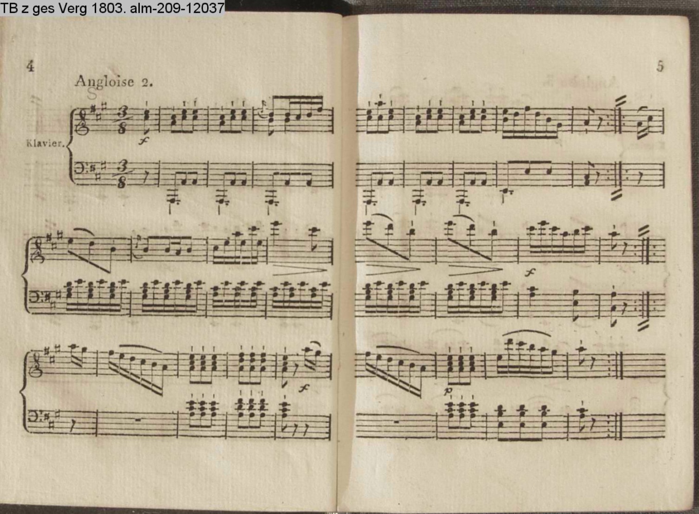 6 Angloisen, 2 Menuetten, 2 Quadrillen und 6 Walzer von Vinzenz Mascheck Kapellmeister in Prag (Sammlung