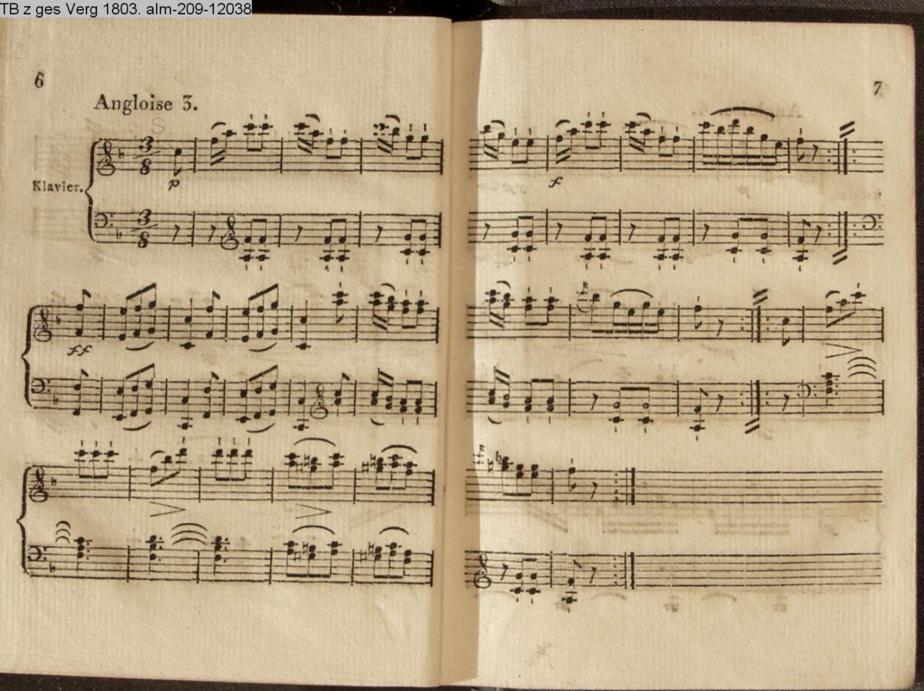 6 Angloisen, 2 Menuetten, 2 Quadrillen und 6 Walzer von Vinzenz Mascheck Kapellmeister in Prag (Sammlung