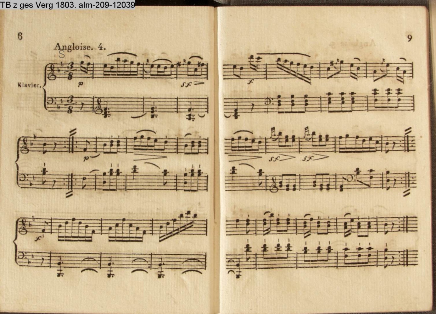 6 Angloisen, 2 Menuetten, 2 Quadrillen und 6 Walzer von Vinzenz Mascheck Kapellmeister in Prag (Sammlung