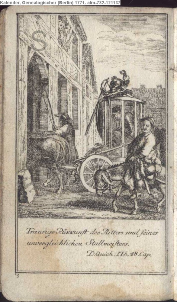 Traurige Rückkunft des Ritters und seines / unvergleichlichen Stallmeisters. / D. Quich. I. Th. 48. Cap.