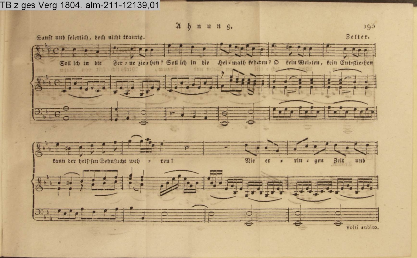 Vertonung des Gedichts »Ahnung« von W. G. Becker.