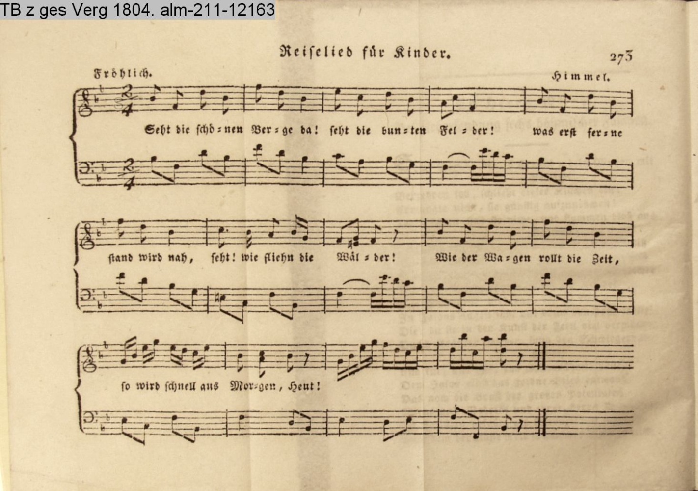Vertonung des Gedichts »Reiselied für Kinder« von Elisa, d. i. Charlotte Elisabeth von der Recke.