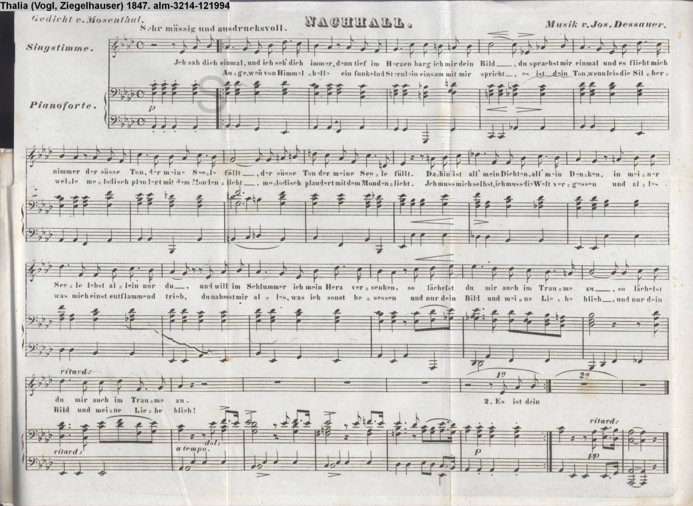 auszufaltende Musikbeigabe: Vertonung des Gedichts »Nachhall« von J. H. Mosenthal