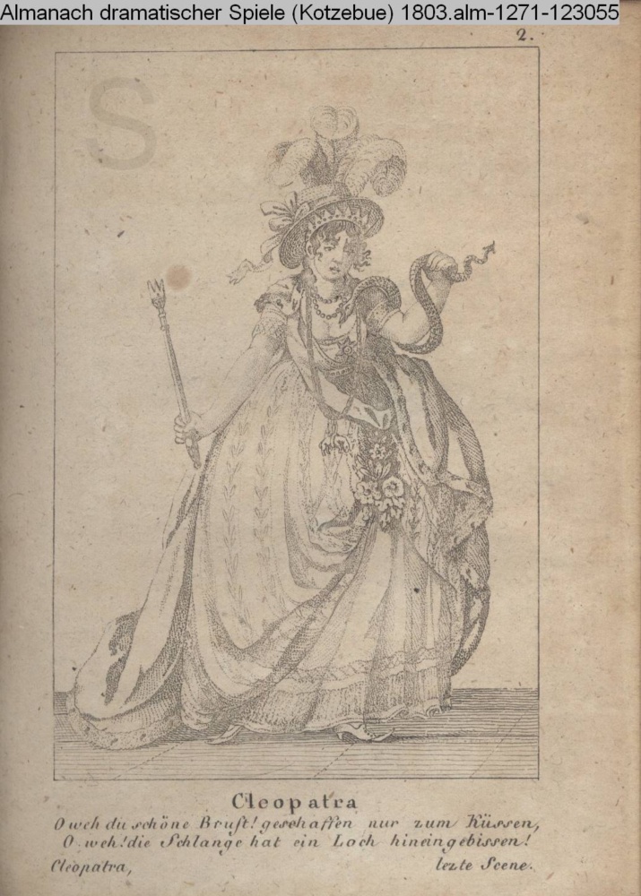 2. / Cleopatra / O weh du schöne Brust! geschaffen nur zum Küssen, / O weh! die Schlange hat ein Loch hineingebissen! / Cleopatra, letzte Szene