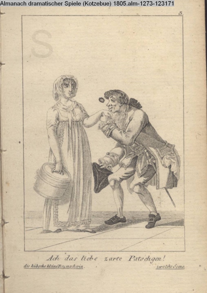 INr 123175, Obj 7); Illustration zu »Die hübsche kleine Putzmacherin« von Kotzebue (