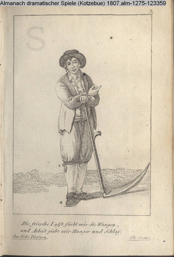 3. / Die friesche Luft färbt mir die Wangen, / und Arbeit giebt mir Hunger und Schlaf. / Das liebe Dörfgen. 1te Scene