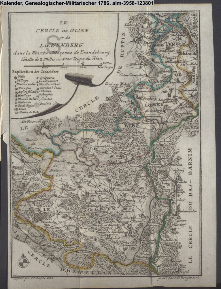 LE / CERVCLE DE GLIEN / et de / LOEWENBERG. / dans la Marche-Moyenne de Brandebourg. / Echelle de 2. Milles ou 4000. Verges du Rhin