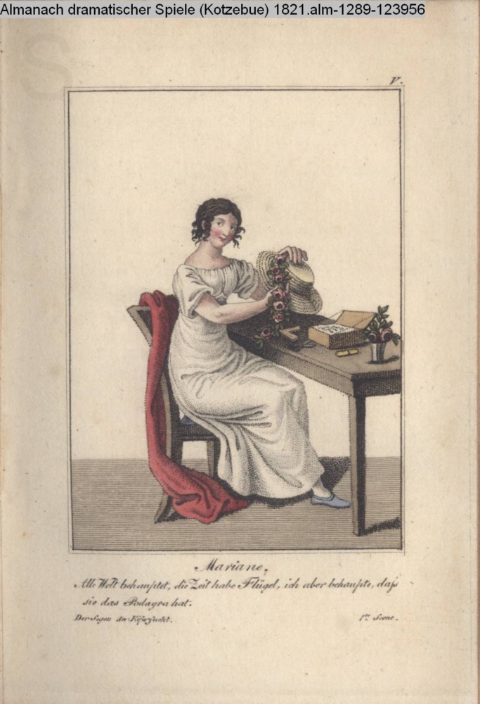 V. / Mariane. / Alle Welt behauptet, die Zeit habe Flügel, ich aber behaupte, daß / sie das Podagra hat. / Der Segen der Eifersucht. 1te Scene
