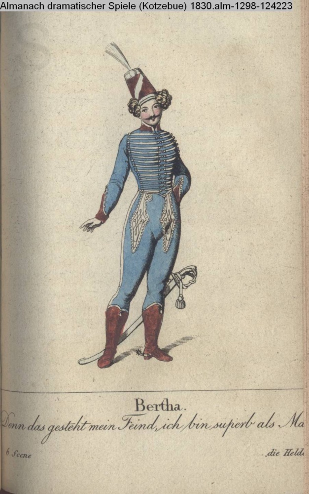Bertha. / Denn das gesteht mein Feind, ich bin superb als Mann. / 6. Scene. Die Helden