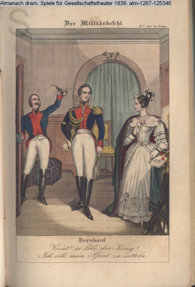 Der Militärbefehl / II Act 13 Scene. / Bernhard. / Vivat! es lebe der König! / ich eile mein Pferd zu satteln.