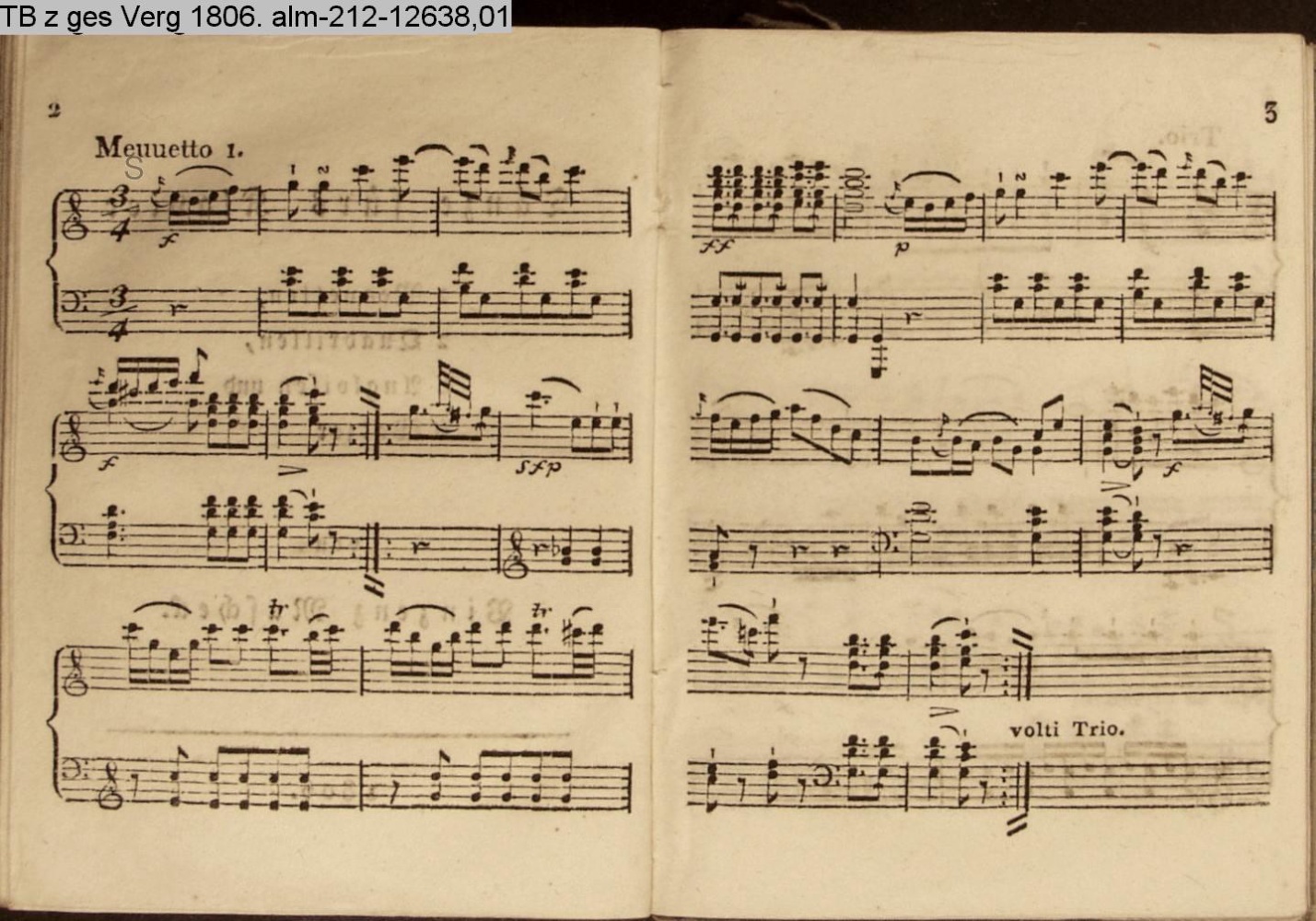 Tänze fürs Klavier 2 Menuetten, 2 Quadrillen, 6 Angloisen und 6 Walzer 1806 (Sammlung