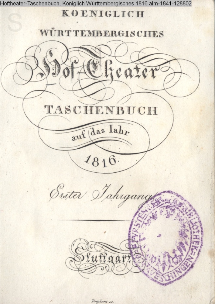 Hoftheater-Taschenbuch, Königlich Württembergisches 1816
