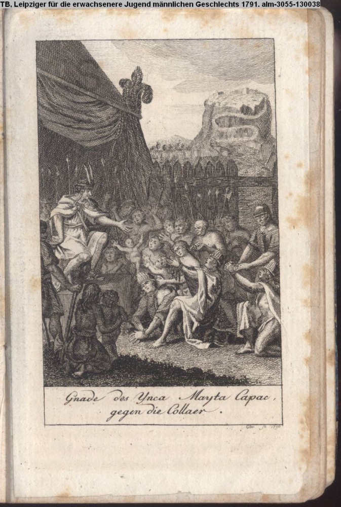 Illustration zu »Anekdote. Mayta Capac, vierter Ynca, und die Collaer. Ein Beyspiel für verirrte Unterthanen«