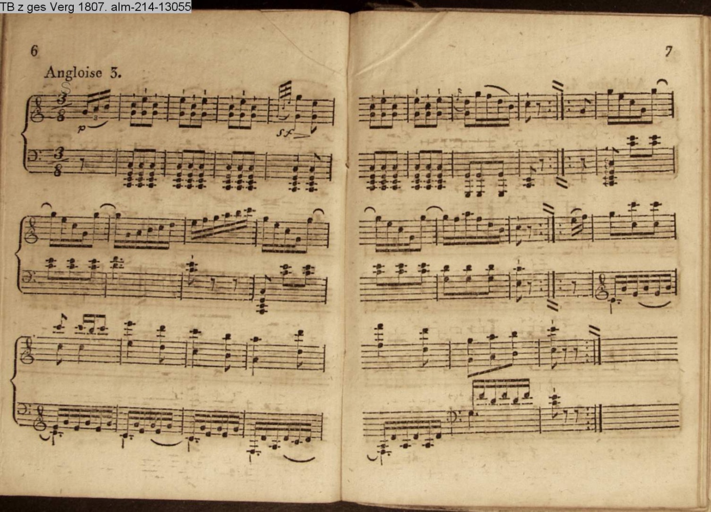 Tänze für's Klavier 6 Angloisen, 2 Quadrillen, 2 Menuetten und 4 Walzer von Mascheck. 1807 (Sammlung