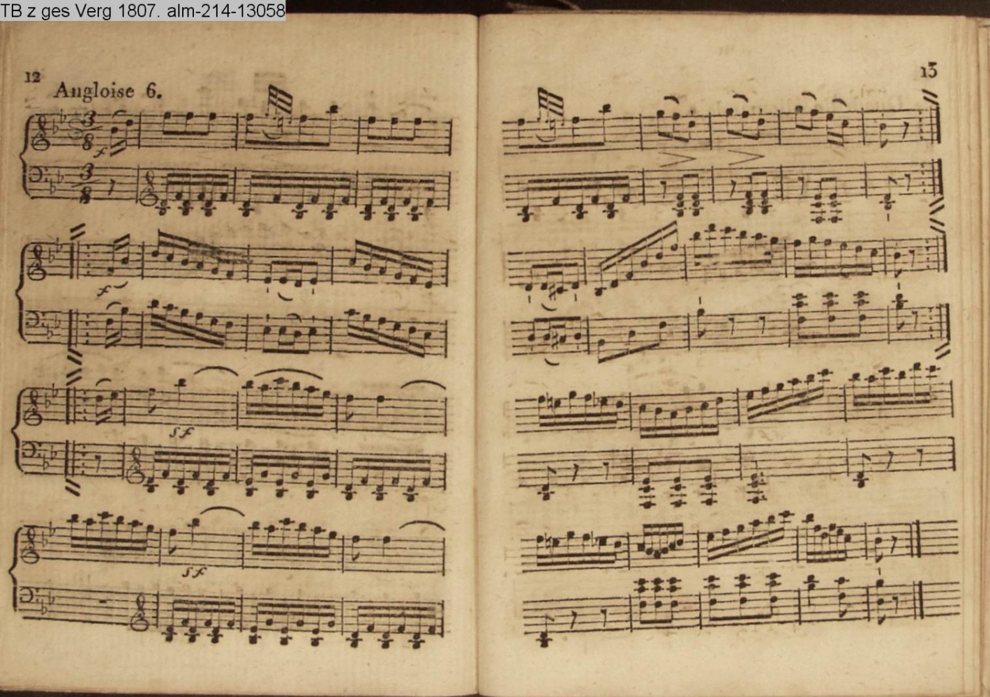 Tänze für's Klavier 6 Angloisen, 2 Quadrillen, 2 Menuetten und 4 Walzer von Mascheck. 1807 (Sammlung