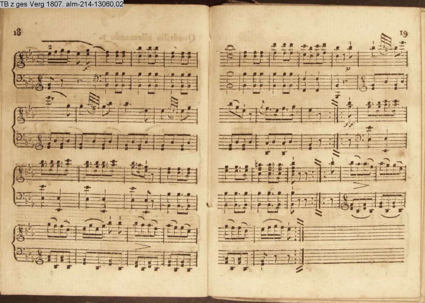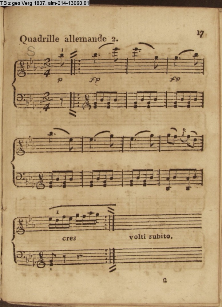 Tänze für's Klavier 6 Angloisen, 2 Quadrillen, 2 Menuetten und 4 Walzer von Mascheck. 1807 (Sammlung